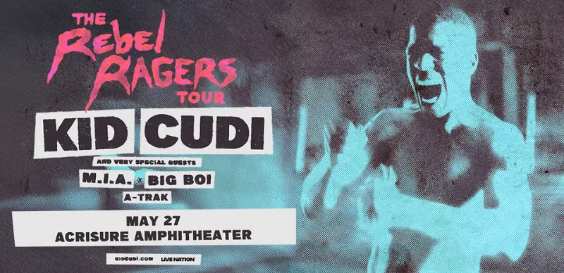 Kid Cudi: The Rebel Rangers Tour special guests: M.I.A., Big Boi, A-Trak Acrisure Amphitheater May 27, 2026 tickets on sale: HERE
