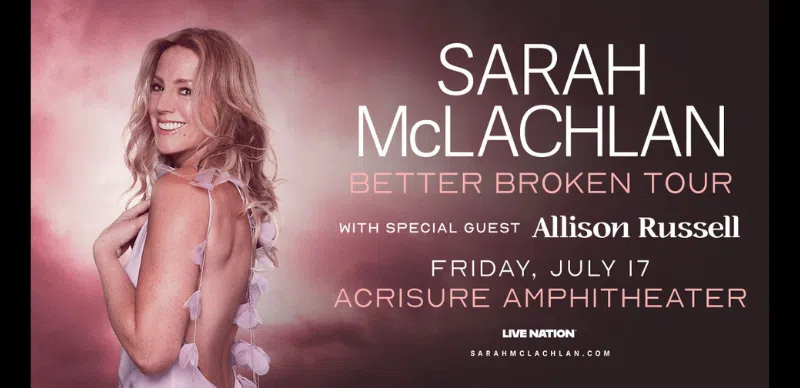 Sarah McLachlan: The Better Broken Tour with special guest: Allison Russell Acrisure Amphitheater Friday, July 17, 2026 Tickets on sale: Thursday Feb 19th 10 AM HERE